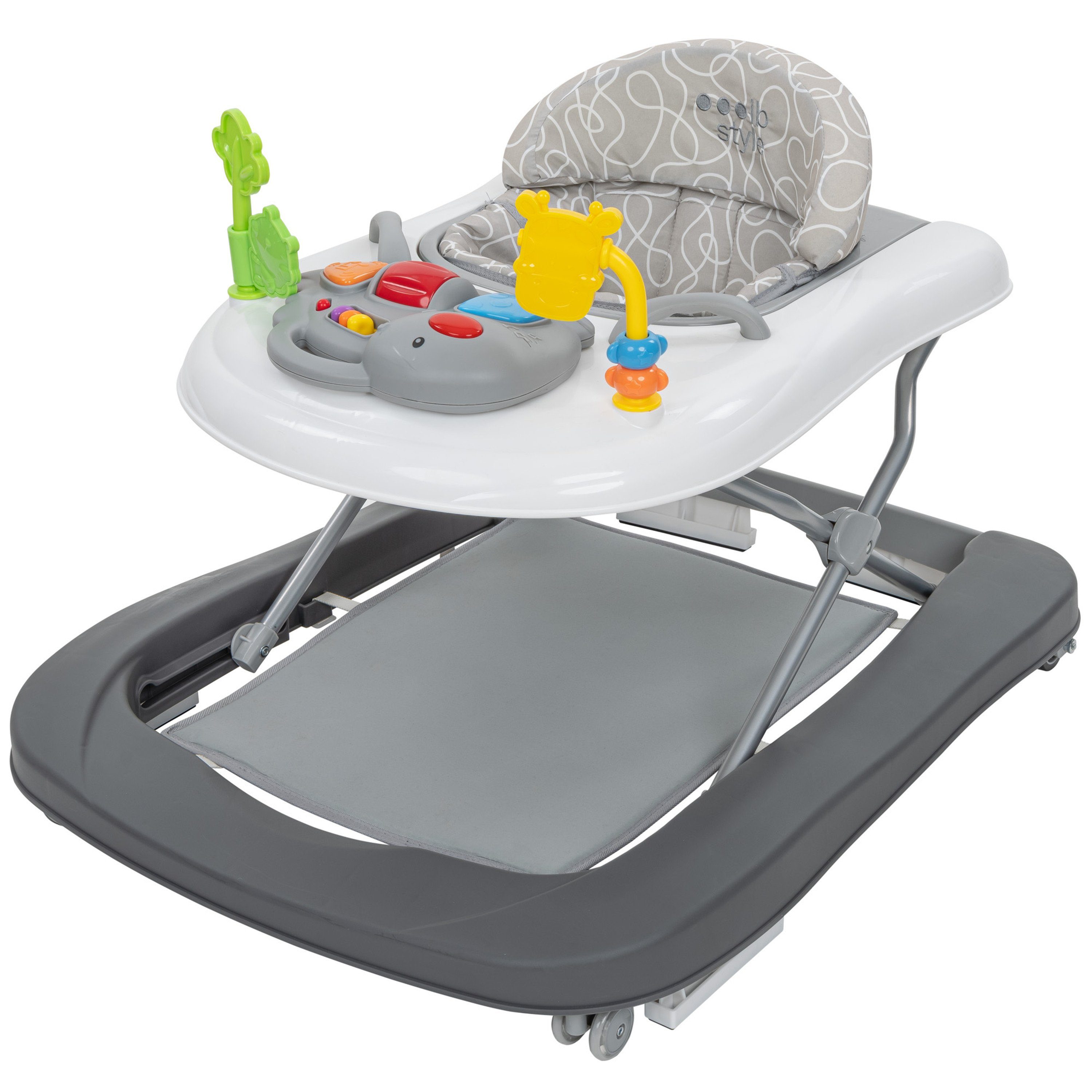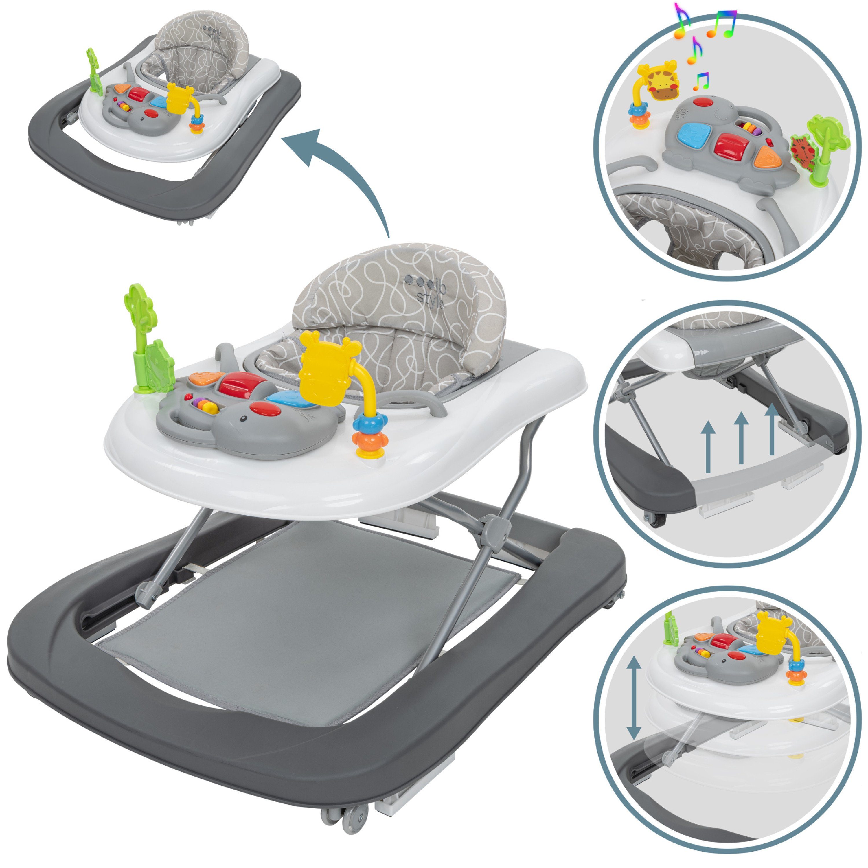 Lauflernhilfe Happy Dino Babywalker Grau Abnehmbarer Sitz Hohenverstellbar Elektronisches Spielelement